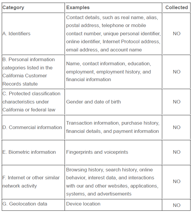 4. Do we process any sensitive personal information? We do not process sensitive personal information.
