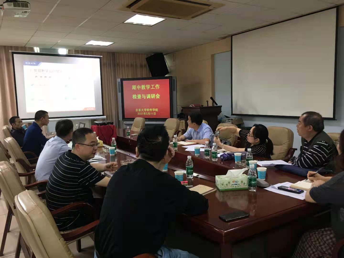 2021年5月11日上午10:00在3418会议室,学校期中教学检查工作组到我院进行了期中本科教学工作检查与调研。工作组由张家界校区教科办主任张友福带队,校级督导粟娟,唐纯翼,教科办唐莉敏老师参与调研,软件学院出席调研会的有学院党委书记李爱华,副书记吴永江,副院长徐洪智、院长助理蔡国民、教研室主任颜一鸣、教务办、学工办老师。