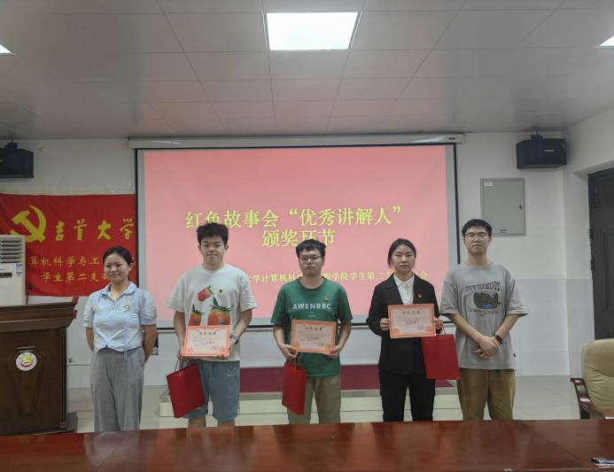 最后由林瑀瑛同志和李京湘同志为本学期各期红色故事会的优秀讲解员颁奖,他们分别是黄逸辉(第一期)、孔斌(第二期)、刘俊华(第三期)、陆珊(第四期),同志们纷纷鼓掌为他们表示祝贺。