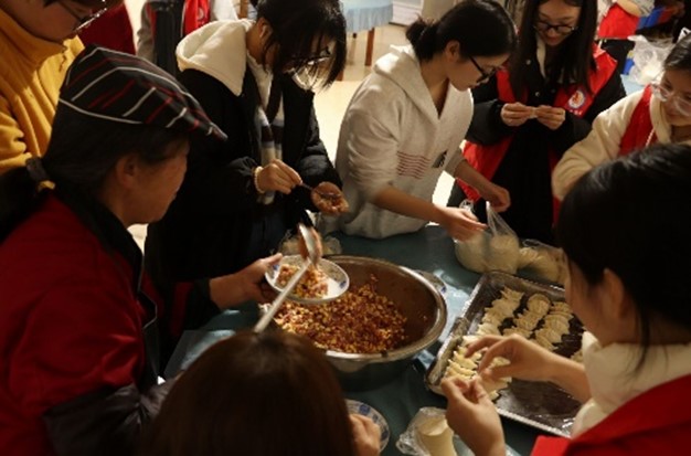 本次活动是由我院学生第二党支部与圆梦联盟共同举行,在前期活动准备中,我院学生第二党支部与圆梦联盟共同筹划活动内容,讨论相关活动细节;活动当天,全体参与人员到达敬老院之后,便开始按先前规划的分工协作,一部分负责包饺子,另一部分陪老人聊家常,为老人表演节目
