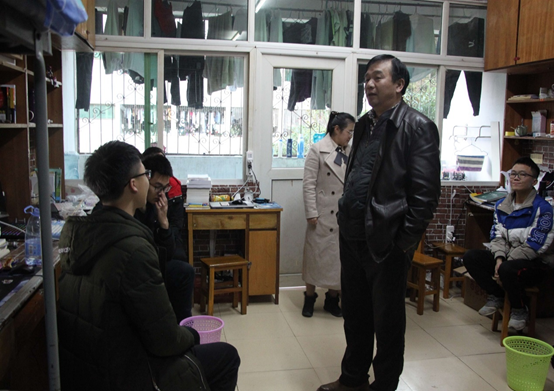 进入宿舍,书记和老师亲切问候学生,深切关怀学生在宿舍的生活情况以及专业学习情况,提醒同学们不要使用大功率用电器,要注意宿舍用电安全,垃圾要及时处理,宿舍要及时通风,爱护宿舍环境等。