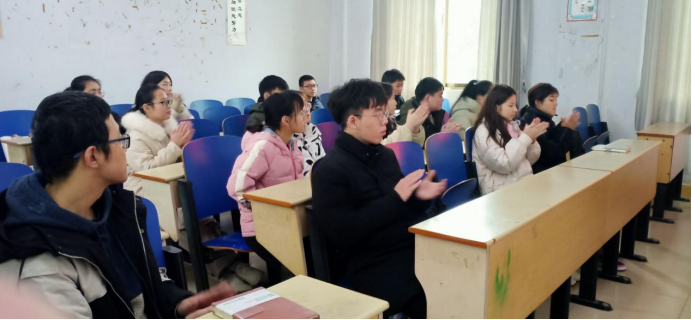 图为各班心理委员对获奖人员表示祝贺
