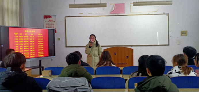 图为邹令老师宣布获奖人员名单