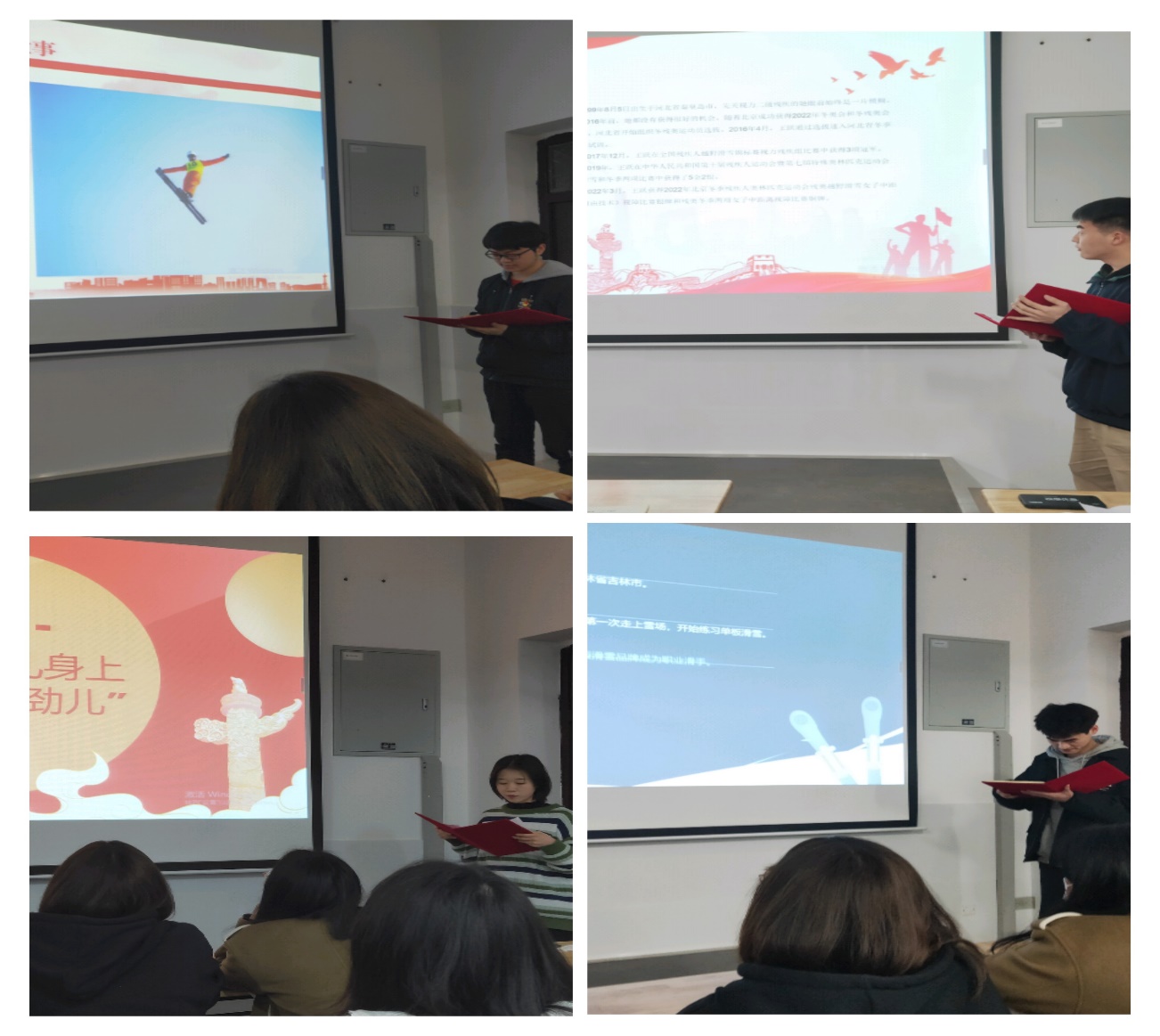 随着张奇超、陈晨、成粤振、符涛鹏、罗焰林的宣讲,同学们逐步认识了相信努力不会欺骗自己的苏翊鸣;在冰雪中奔跑,克服重重困难的刘子旭;带着钢钉出战冬奥的“钢铁侠”贾宗洋;让冬奥之光照亮梦想之路的盲人女孩王跃,并且增强了同学们关注奥运文化、礼赞奥运精神的决心。