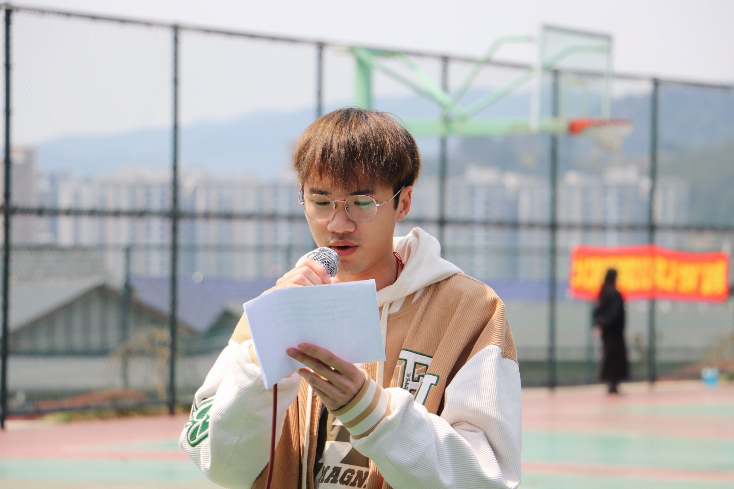随后,赵潞发表开幕致辞,她首先对所有参与开幕式的师生表达了诚挚的感谢,并阐述了举办此次篮球联赛的重大意义。她强调,本次联赛不仅仅是一项普通的体育竞赛,更是对学生身体素质提升的一次有力推动,期望通过这次比赛激励学子们从寝室走到户外,积极参与体育锻炼,塑造健康的体魄。同时,她寄语各位参赛者能在比赛中展现出高水准的竞技水平和优良的比赛风格,预祝本届“阳春杯”篮球联赛取得圆满成功。