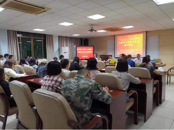 本网讯(邓腾)为深入学习贯彻学校党委“不忘初心、牢记使命”主题教育会议精神,9月18日晚19时30分,软件学院在3418会议室召开“不忘初心、牢记使命”主题教育动员大会。并邀请马克思主义学院副院长彭兴富做辅导学习报告。软件学院书记李爱华、院长周清平、副书记李军、副院长徐洪智、学院各支部书记及软件学院全体师生党员参会,会议由软件学院书记李爱华主持,其中学生第一党支部在中山实训基地创智谷的二楼会议室通过视频会议的方式对此次“不忘初心,牢记使命”主题教育活动进行了学习。